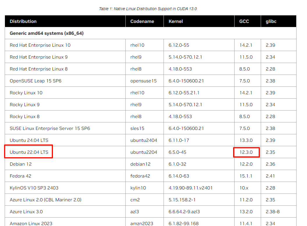 可以查看cuda对应的gcc版本。