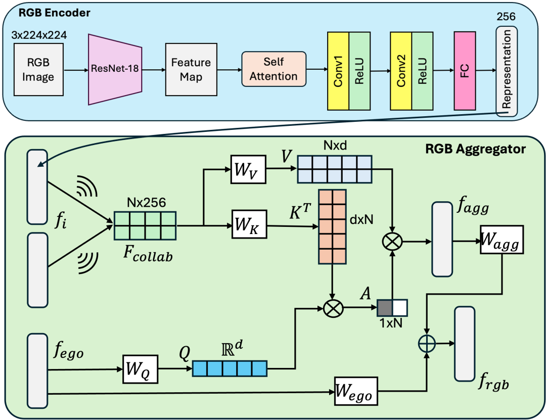 其中 表示第 个模态的观测数据(如 RGB、LiDAR)。若车辆间通过 V2V/V2X 形成协作网络 ,则每个车辆的最后决策函数可以建模为: