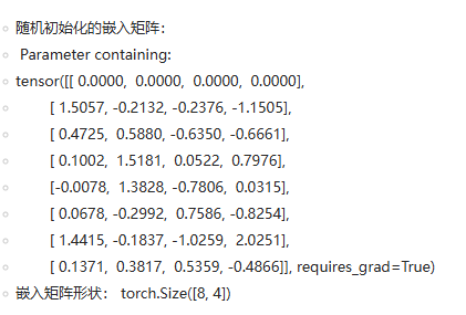 # 2. 查看随机初始化的嵌入矩阵(embedding.weight就是嵌入矩阵)