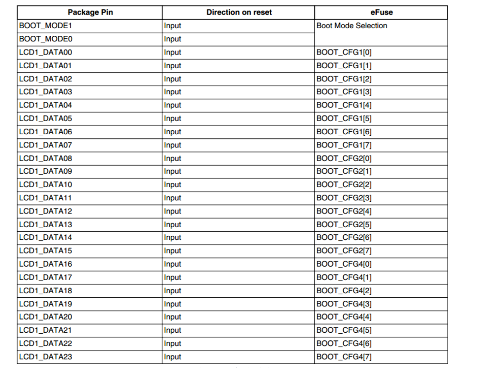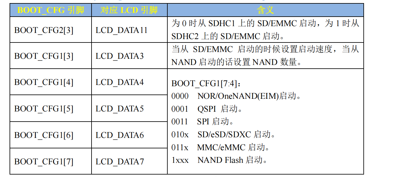 是 BOOT_CFG2[3],LCD_DATA3~LCD_DATA7 就是 BOOT_CFG1[3]~BOOT_CFG1[7],这 6 个
