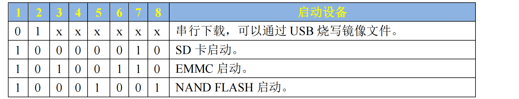 来配置启动设备的。正如启动模式由 BOOT_MODE[1:0]来选择一样,启动设备是通过