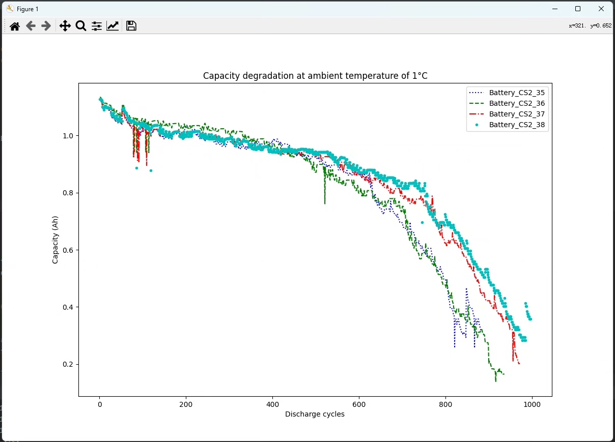 电池的剩余寿命(RUL)预测是工业领域的重要课题。马里兰大学发布的电池老化数据集记录了多组锂电池在循环充放电过程中的电压、电流、温度等参数,这玩意儿天生就是时间序列预测的练兵场。今天咱们拿这个数据集试试手,用RNN和LSTM搞点有意思的预测实验。