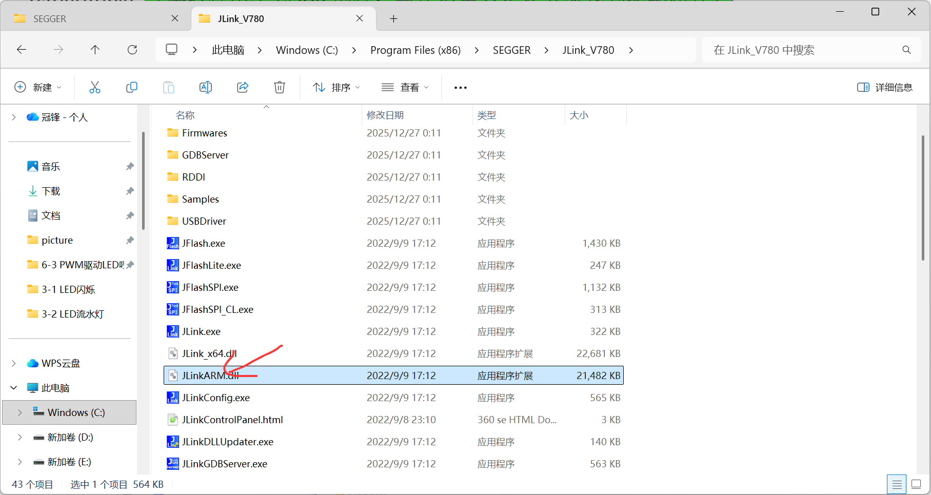找到JLinkARM.dll