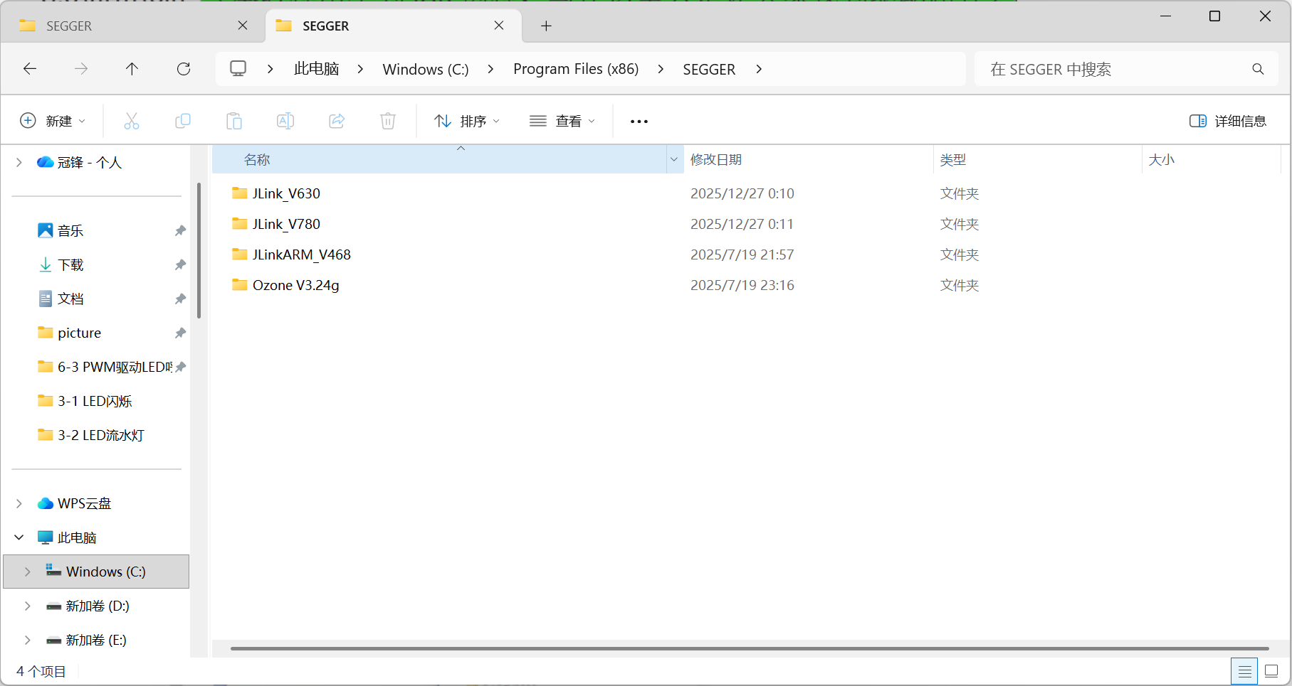 在你安装jlink驱动时的目录(我这里是默认路径,也就是C:\Program Files (x86)\SEGGER)