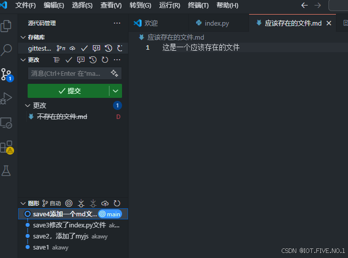 看到左边的版本控制这一栏里的更改下显示了我们的操作。