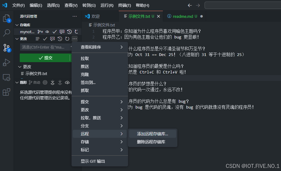 不管是你用终端代码操作,还是跟着我后续的vscode操作,本质上都是将本地的仓库和远程仓库联系起来。本地的commit操作,本地到远程的push操作。
