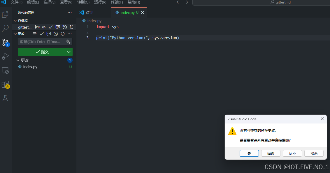 注意奥,如果你的项目完全是空的,或者你还没有在本地进行过提交,这次的提交可是会失败的奥。