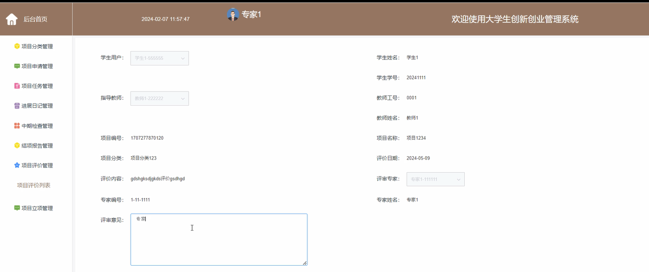 图4.5 项目评价管理界面图