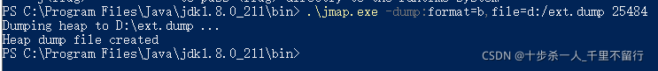 .\jmap.exe -dump:format=b,file=d:/ext.dump 25484