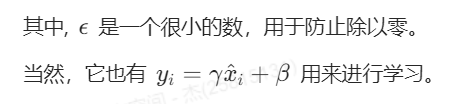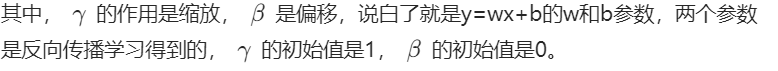 其实到这里就得到了均值为0方差为1的分布规律了,但是为了让标准化后增加一些随机噪音,并在一定程度上起到正则化作用,添加了自适应学习