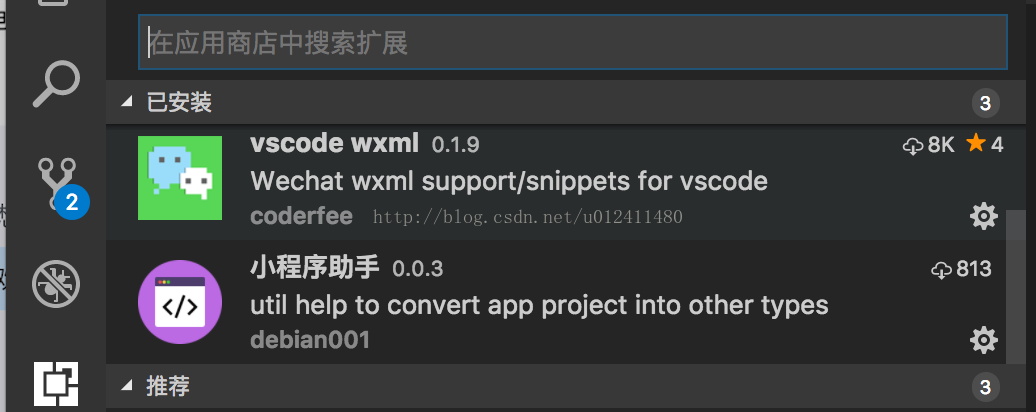 2.识别wxss:搜索小程序,安装插件。