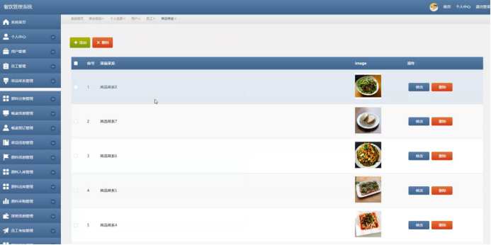图5-10菜品菜系管理界面