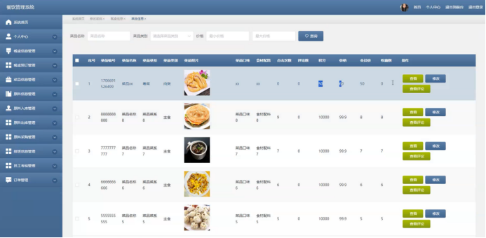 图5-13菜品信息管理界面