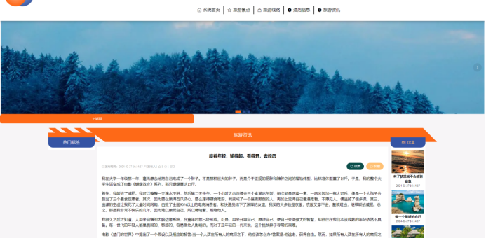 旅游资讯:在旅游资讯页面的输入栏中输入标题进行查询,可以查看到旅游资讯详细信息,并进行点赞或收藏操作;旅游资讯页面如图5-4所示: