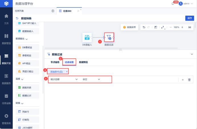 对于数据缺失和异常,我会利用FineDataLink的数据过滤功能,设置过滤条件就能一键得到想要的数据。