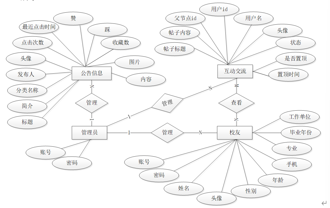 管理员模块:管理员是系统中的核心用户,管理员登录后,可以对后台系统进行管理。主要功能有系统首页、个人中心、专业、校友、毕业年份、互动交流、系统管理等功能。管理员用例如图3-2所示。