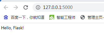 选择左边的app.py,然后点击运行,这个时候打开显示的网页,显示“Hello, Flask!”,就说明安装成功了。