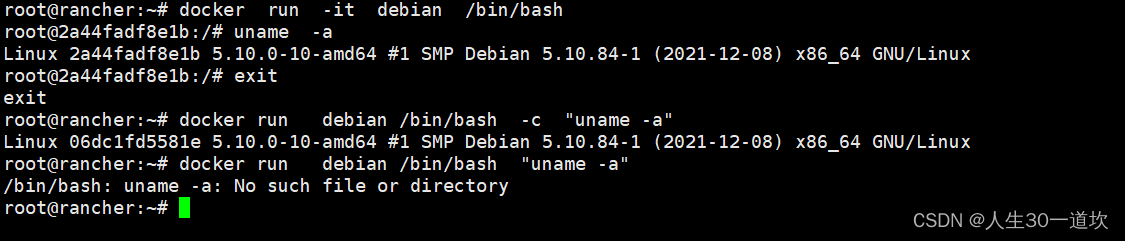 分配一个伪终端然后-it,进去到容器内部。与-c 传命令给容器执行效果一致。