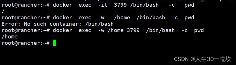 docker exec -it -w /home ### /bin/bash -c pwd
