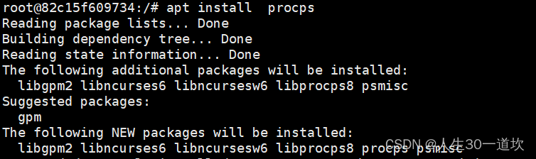 此时docker exec -it ### /bin/bash 进入到容器内部,打开bash,但是没有ps命令,眼看就要瞎。