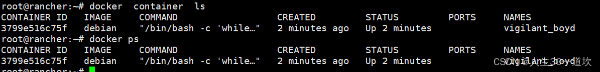 docker container ls 和docker ps 输出结果一致