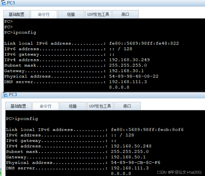 以客户部、产品部为例,验证DHCP地址获取情况:可以获取到ip地址