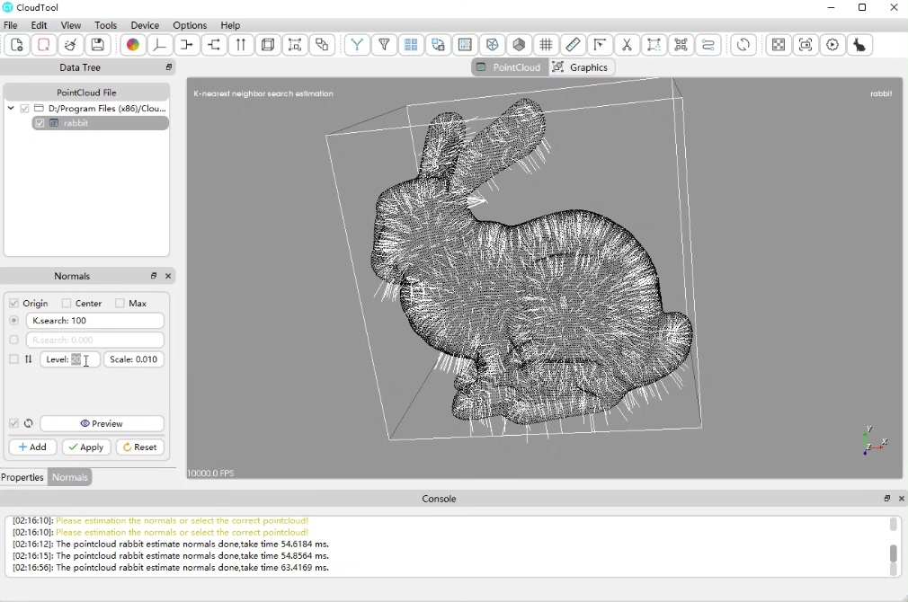 法向量计算是很多操作的基础,PCL的NormalEstimation类封装得挺利索: