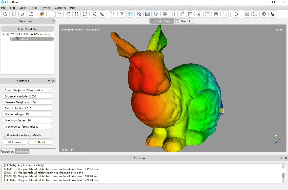 基于C++的Qt和PCL开发的点云显示与交互软件,适合图形图像新人及研究生快速了解点云数据处理及编程开发工作,支持功能包括: 1、颜色渲染 2、法向量等属性计算 3、自动滤波 4、目标剪裁 5、几何量测 6、目标分割 7、点云配准 8、曲面构建 备注:基于cmake编译,支持跨平台,linux和windows下均可运行。 本次服务不包括源码编译,需要自行编译。 Qt5.12.0 PCL 1.11.0 VTK 8.2.0