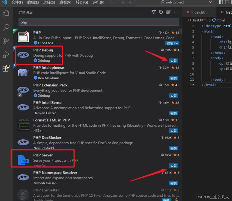 这里我们需要两个扩展,一个是php server,一个是php debug