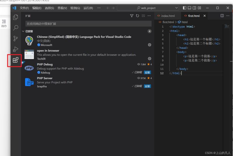 这篇文章给大家介绍了使用vscode运行php的操作步骤,文中通过图文结合的方式介绍的非常详细,对大家的学习或工作有一定的帮助,需要的朋友可以参考下。有的时候运行,但是页面没有显示你想要的信息,大家可以ctrl s保存一下文件再去运行一下看看。以上就是用vscode运行php的图文详解的详细内容,更多关于vscode运行php的资料请关注。这里我们需要两个扩展,一个是php server,一个是p