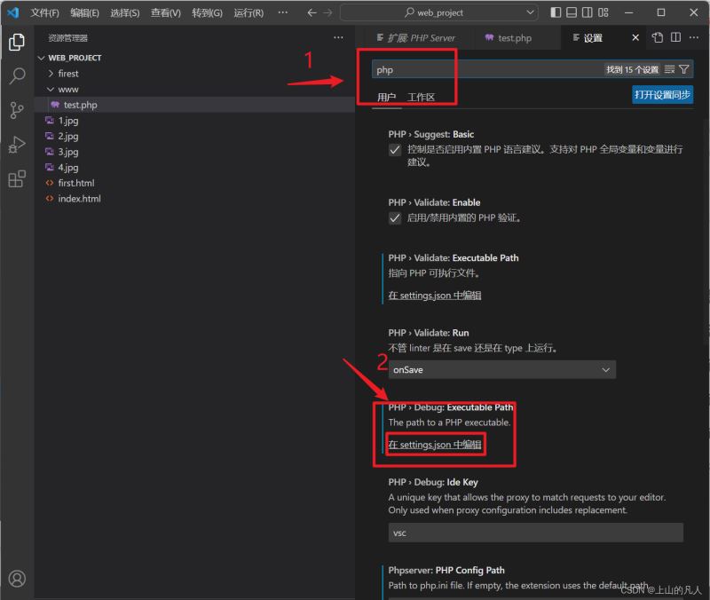 "phpserver.phpConfigPath": "php路径/php.ini",