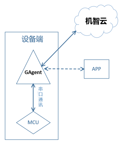 设备端的开发包含GAgent,MCU开发。设备能够连接到云端才能够实现APP等客户端对设备的远程查看和控制,MCU数据通过GAgent与机智云产生交互。
