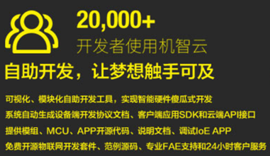 - 机智云平台为开发者提供了自助式智能硬件开发工具与开放的云端服务。通过傻瓜化的工具、不断增强的SDK与API服务能力最大限度降低了物联网硬件开发的技术门槛,降低研发成本,提升开发者的产品投产速度,帮助开发者进行硬件智能化升级,更好的连接、服务最终消费者。