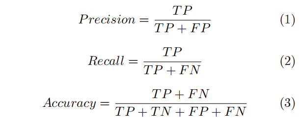 样本分类是工业缺陷检测中最基础的任务,分类指标通常可以用混淆矩阵(Confusionmatrix)来表示,通常分类性能包括准确率(Precision)、召回率(Recall)、精准率(Accuracy)。