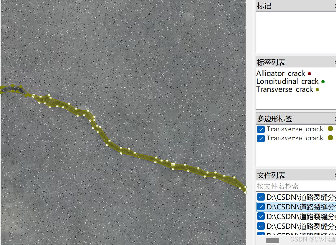 精确轮廓标注:将裂缝区域从背景中分离,支持病害面积、长度等参数的精确计算;