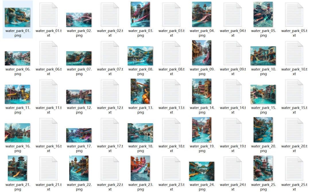 打标器生成图片相应的tag后,还需要人工处理。主要包括两点,一是按重要性由高到低将tag排序,二是把含糊、笼统、错误的tag删掉,并补充重要的tag。以上面Qwen打标的水上乐园的图片tag为例,人工处理后为: