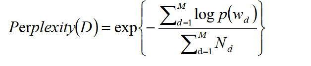 对于LDA模型,困惑度的计算公式为: