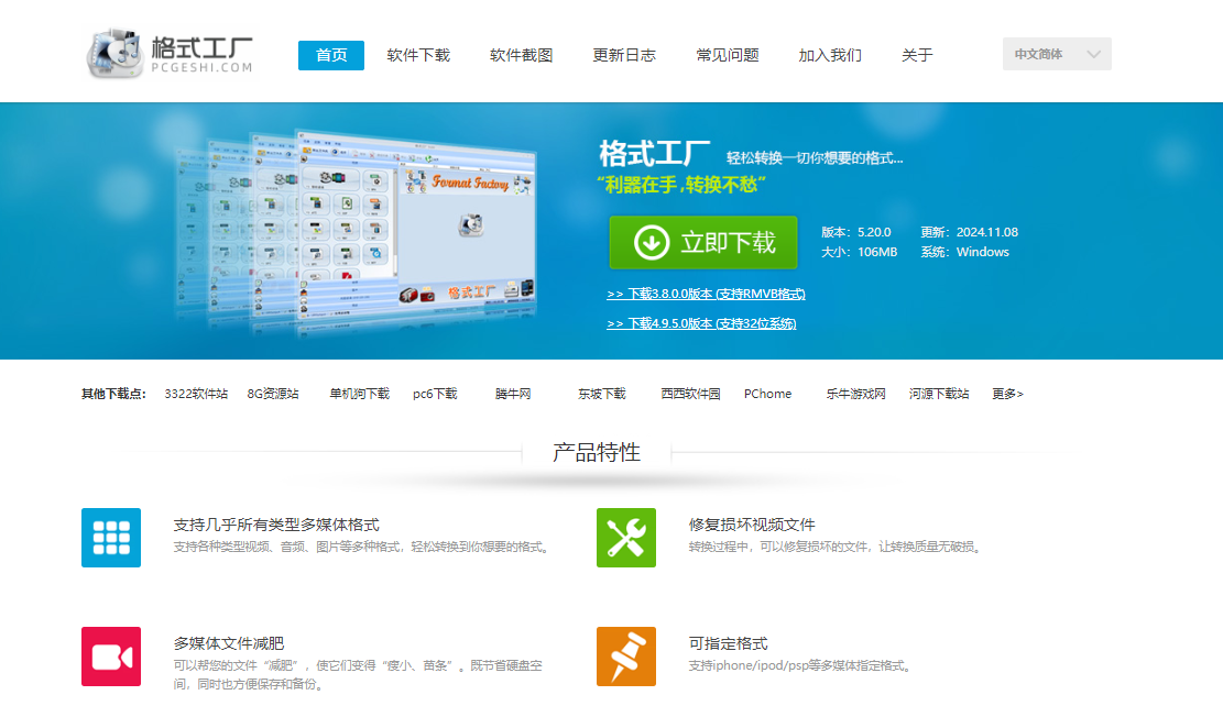 格式工厂下载地址 http://www.pcgeshi.com/index.html