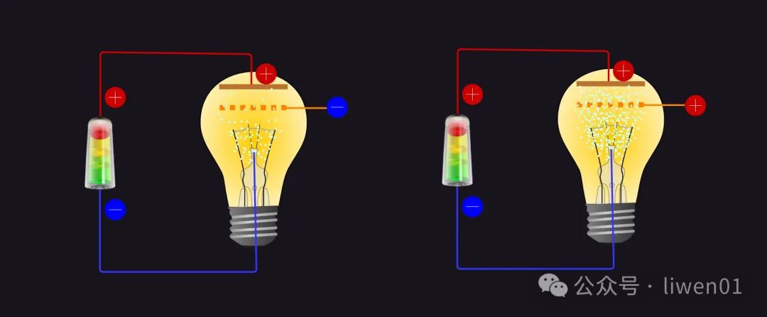 后来在其它科学家的探索中我们知道:在真空管中,当电流通过阴极(灯丝)时,它会使灯丝变热。根据热电子发射原理,阴极的温度升高到一定程度时,灯丝表面的电子会获得足够的能量克服金属表面的势垒(也就是逸出功),从而被释放到真空中,这个过程称为热电子发射。