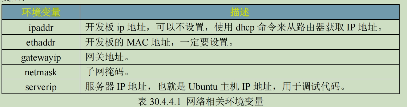 tftpboot [loadAddress] [[hostIPaddr:]bootfilename] 和 nfs 命令格 式一 样的,但是和 nfs 命令的区别在于,tftp 命令不需要输入文件在 Ubuntu 中的完整路径,只需要输入文件名即可。 例如:将 zImage 下载到开发板 DRAM 的 0X80800000 地址处 tftp 80800000 zImage