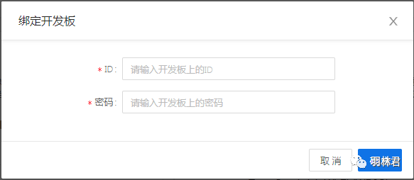 点击绑定开发板,填入SOC板子背面的 ID和密码