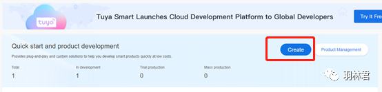 首先我们需要先注册一个涂鸦官网(https://iot.tuya.com/)的账号,然后进行选择 创建产品。