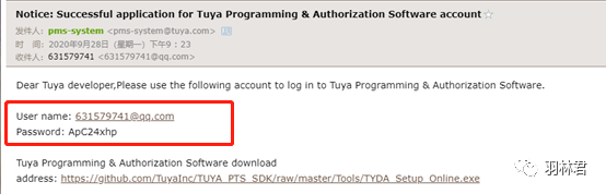 进去之后设置邮箱地址等信息,涂鸦会将授权的账号密码发到你的邮件。
