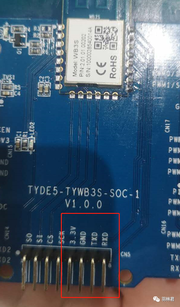 再使用串口工具连到SOC主控板的RX TX引脚,连接到电脑