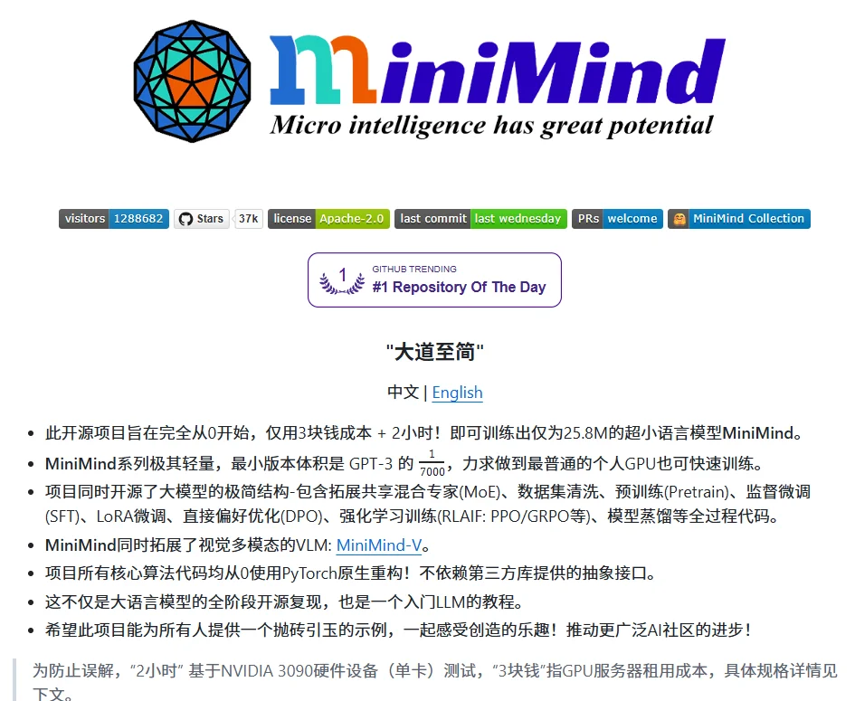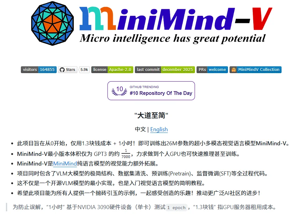 做对项目:强推 Minimind/Minimind-V(单卡4090可跑)。