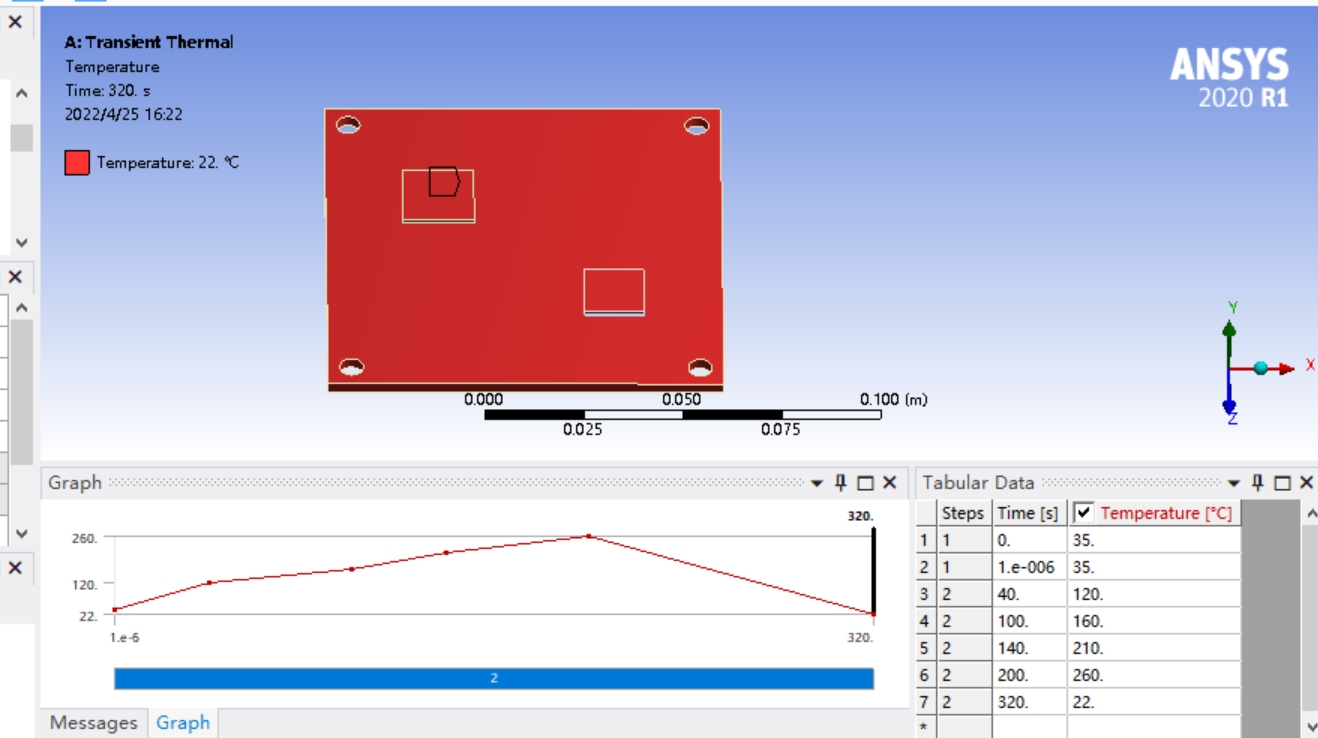 - 基于“Transient Thermal (ANSYS)”模板创建热分析系统(SYS),定义温度加载曲线(如回流焊过程中的升温-保温-降温阶段)、边界条件(如对流换热系数、热辐射参数)。