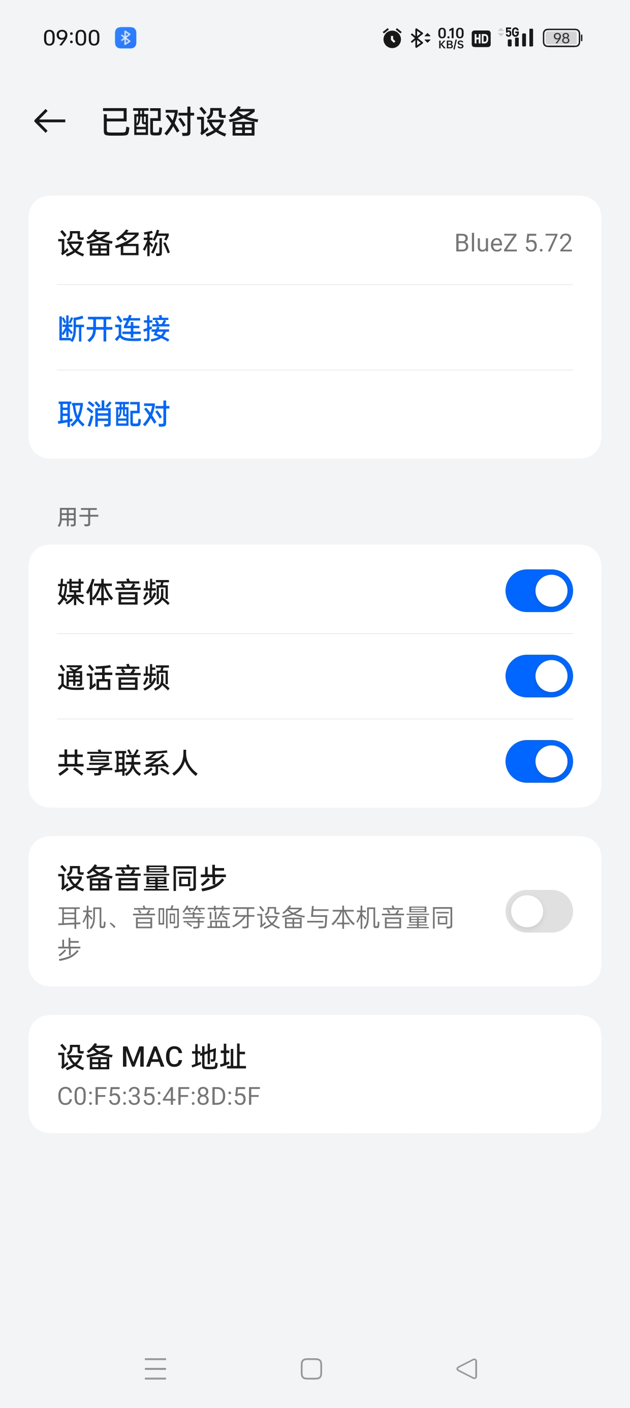 [bluetooth]# [12:09:59.608] event7 - 真我 GT Neo5 (AVRCP): device removed