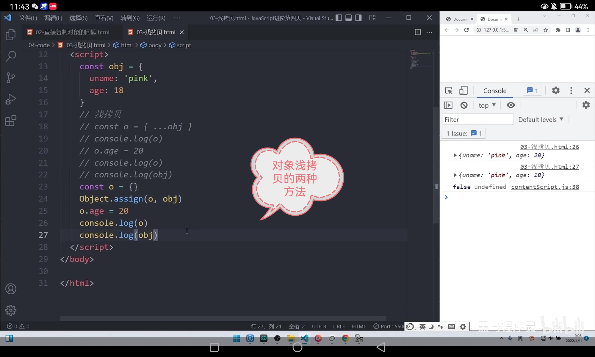 拷贝对象:Object.assign()/展开运算符{...obj}拷贝对象