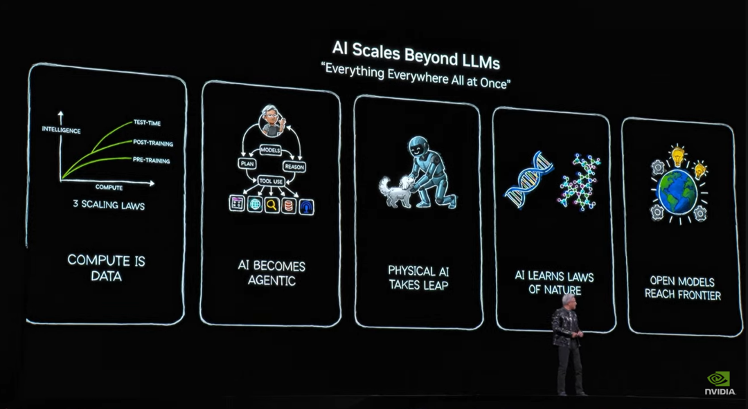 黄仁勋展示的第一张幻灯片是:「人工智能的发展超越了大型语言模型。」