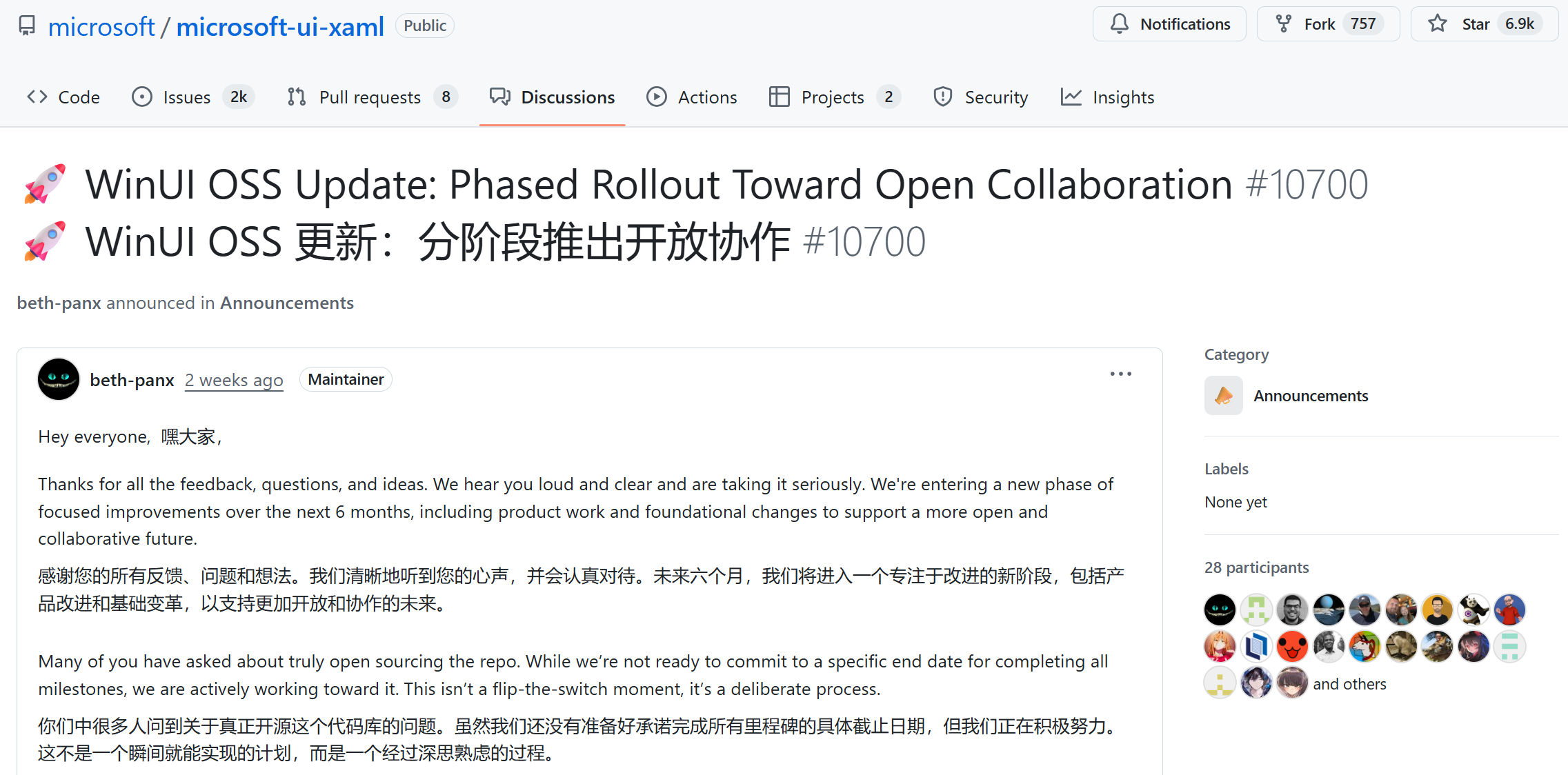 1.透明化开发流程:微软内部提交会逐步同步到 GitHub。